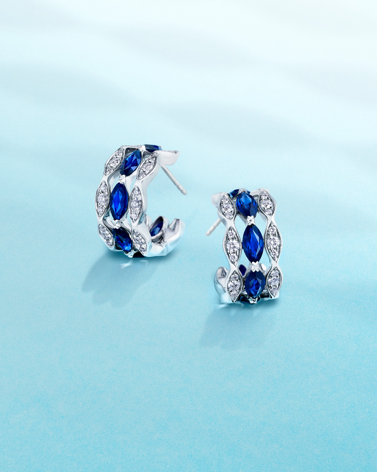 The collection’s abstract fish-scale motifs—crafted in diamonds and newly introduced sapphires—add textured brilliance. Their wave-like curves catch the light from multiple angles, offering a more nuanced alternative to traditional festive sparkle. The sapphire editions amplify this effect, bringing a cool, contemporary energy to winter dressing.