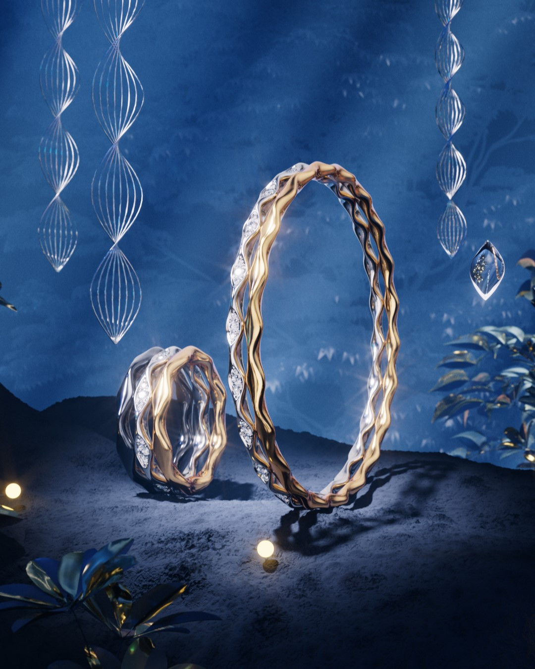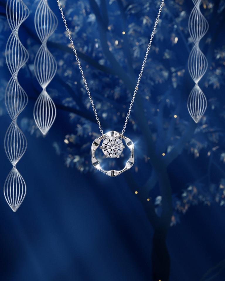 There is a particular sophistication in jewellery that behaves as structure rather than surface. Here, form is not merely decorative: it interacts with movement, space and shadow. The Chow Sang Sang’s YuYu Collection embodies this 3D language of design through suspended, 360-degree constructions that reveal different facets as the wearer moves. The triple-layer diamond ring, for example, creates depth through stacked contours that build volume without weight.